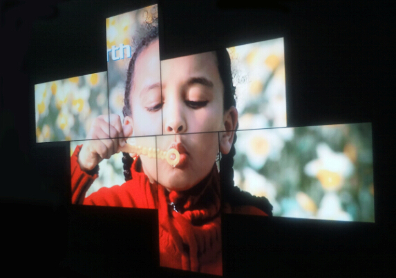 意異形拼接,從字面上理解兩個(gè)詞:“異形”“創(chuàng)意”,其實(shí)就是打破傳統(tǒng)常規(guī)的拼接擺放模式,以任意的顛倒位置,旋轉(zhuǎn)拼接出各種形狀的顯示樣式,有一些特定的場合,比方說商鋪的櫥窗 ……